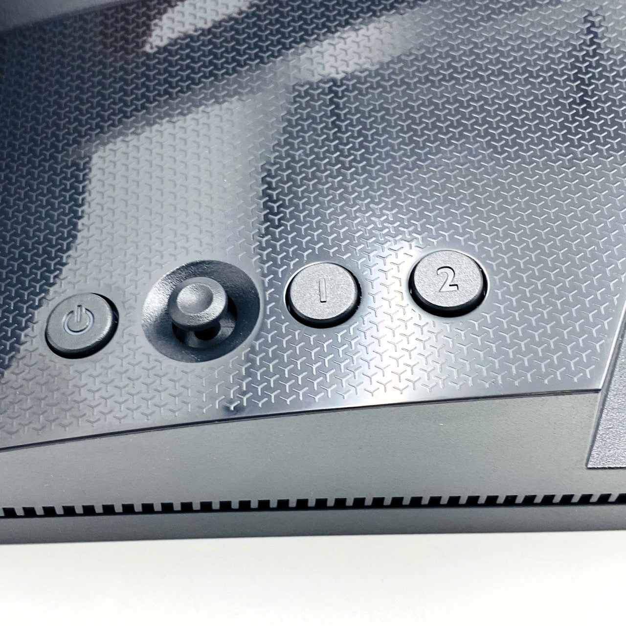 モニター本体には、遮光フード(シールド)や S スイッチ(5 方向操作型)など、ゲーム環境を最適化するアクセサリやコントロール機構も付属しており、設定切り替えや照明の干渉を抑える使い勝手の工夫もされています。