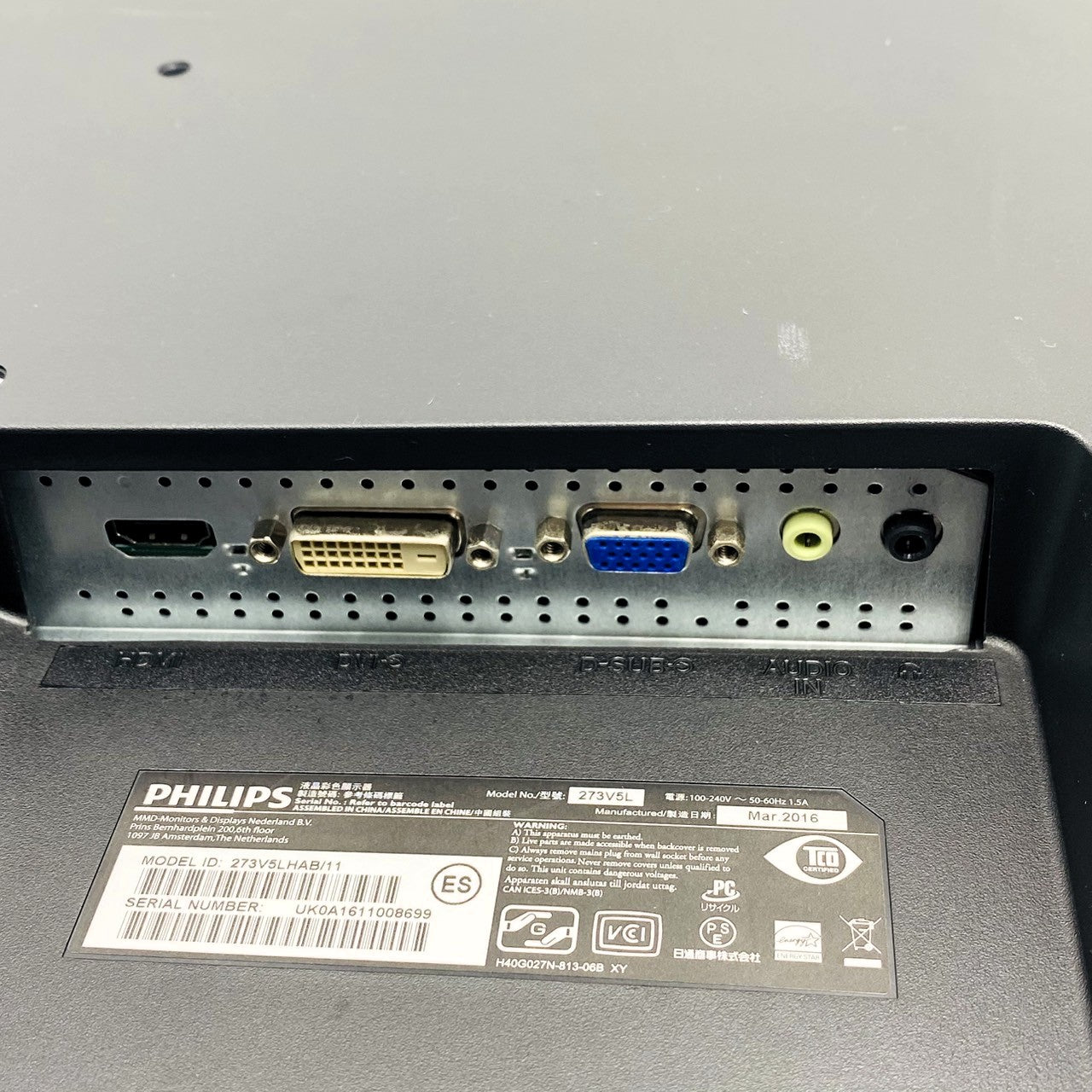 【中古モニター】27インチ メーカー PHILIPS 型番 273V5LHAB-11 入力端子 HDMI D-Sub DVI 解像度 1920x1080 Bランク 中古 液晶 モニター PC ディスプレイ